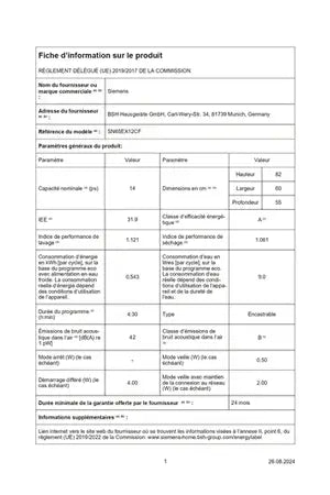 Lave-vaisselle encastrable Siemens SN63HX10TF