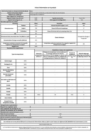 - Volume 404 l - Dimensions (H-L-P) 191,2 x 70 x 76.8 cm - Classe D - 38 db