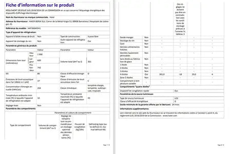 - Volume 301 L - Dimensions (H-L-P) 190 x 60 x 74,2 cm - Classe D - 37 dB
